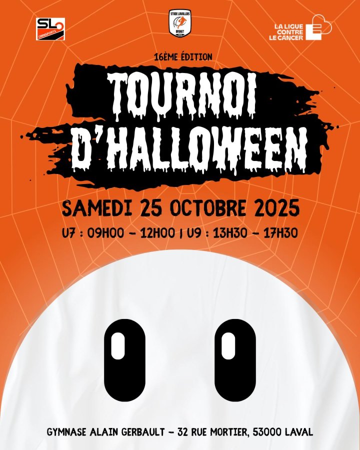 Le Stade Lavallois Basket a le plaisir d'inviter votre club à la 16ème édition de son tournoi d'Halloween organisé pour les mini basketteurs du département. Cette année, il aura lieu le SAMEDI 25 OCTOBRE 2025 :